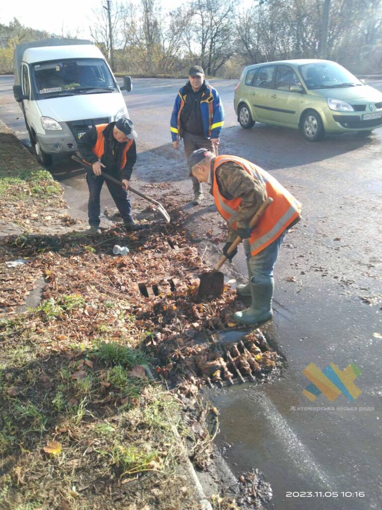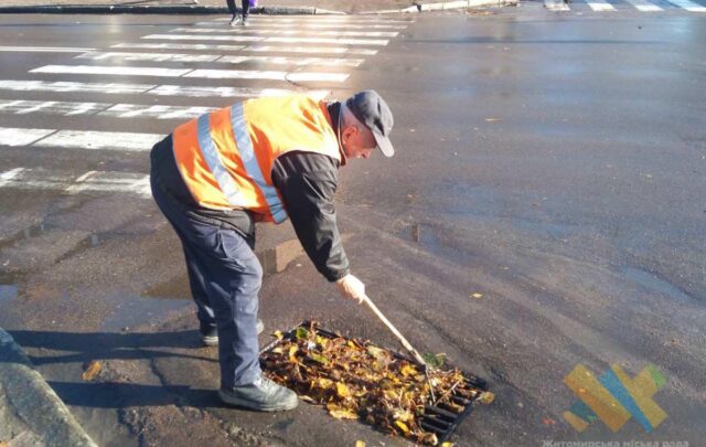 У Житомирі в неділю, 5 листопада, працівники комунальних підприємств “УАШ”, “Експлуатація штучних споруд” та “Зеленбуд” очищають ливневі решітки від сміття. Напередодні 4 листопада внаслідок дощу у місті знову затопило “проблемні” перехрестя.