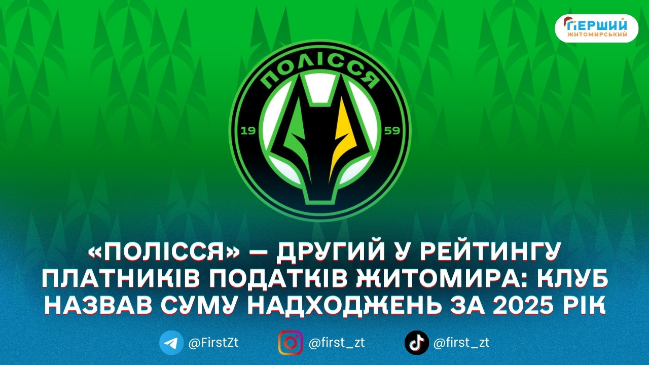 ФК «Полісся» повідомив, що у 2025 році забезпечив близько 60 млн грн податкових надходжень до бюджету Житомира та області. У клубі зазначили, що це — один із найвищих показників серед платників податків міста.