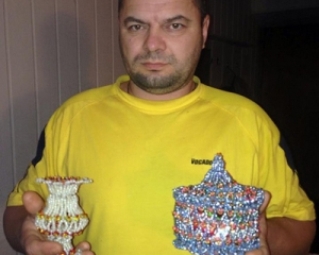 Вдома була книжка з плетіння, почитав, розібрався що до чого. За вечір сплів і сережки, і браслет з бісеру. Зараз свої композиції чоловік плете без схем і креслень, тому кожен виріб унікальний. Плетіння заспокоює. Перестала боліти голова, пальці стали слухняними, став гарно говорити.