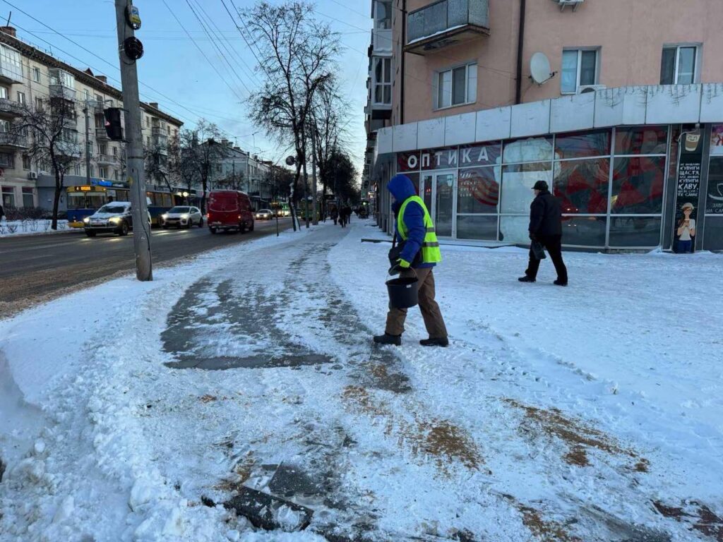 За інформацією міськради, першочергово комунальники очищають та обробляють протиожеледними засобами головні магістралі, мости, спуски й підйоми. Також працюють бригади з ручного прибирання — вони приводять до ладу зупинки громадського транспорту, вузькі тротуари, сходи, острівці безпеки та пішохідні переходи.