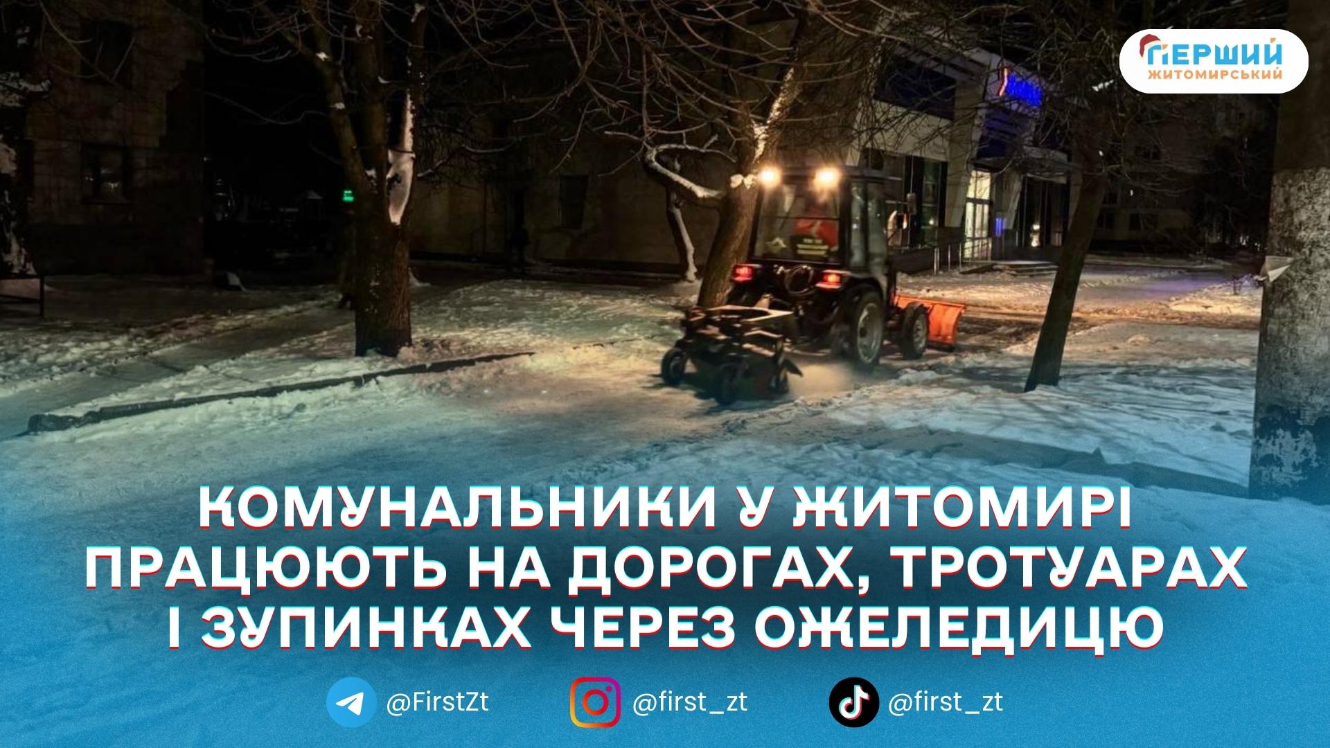 У Житомирі триває протиожеледна обробка та розчищення доріг і тротуарів від снігу. Про це повідомили в Житомирській міській раді.