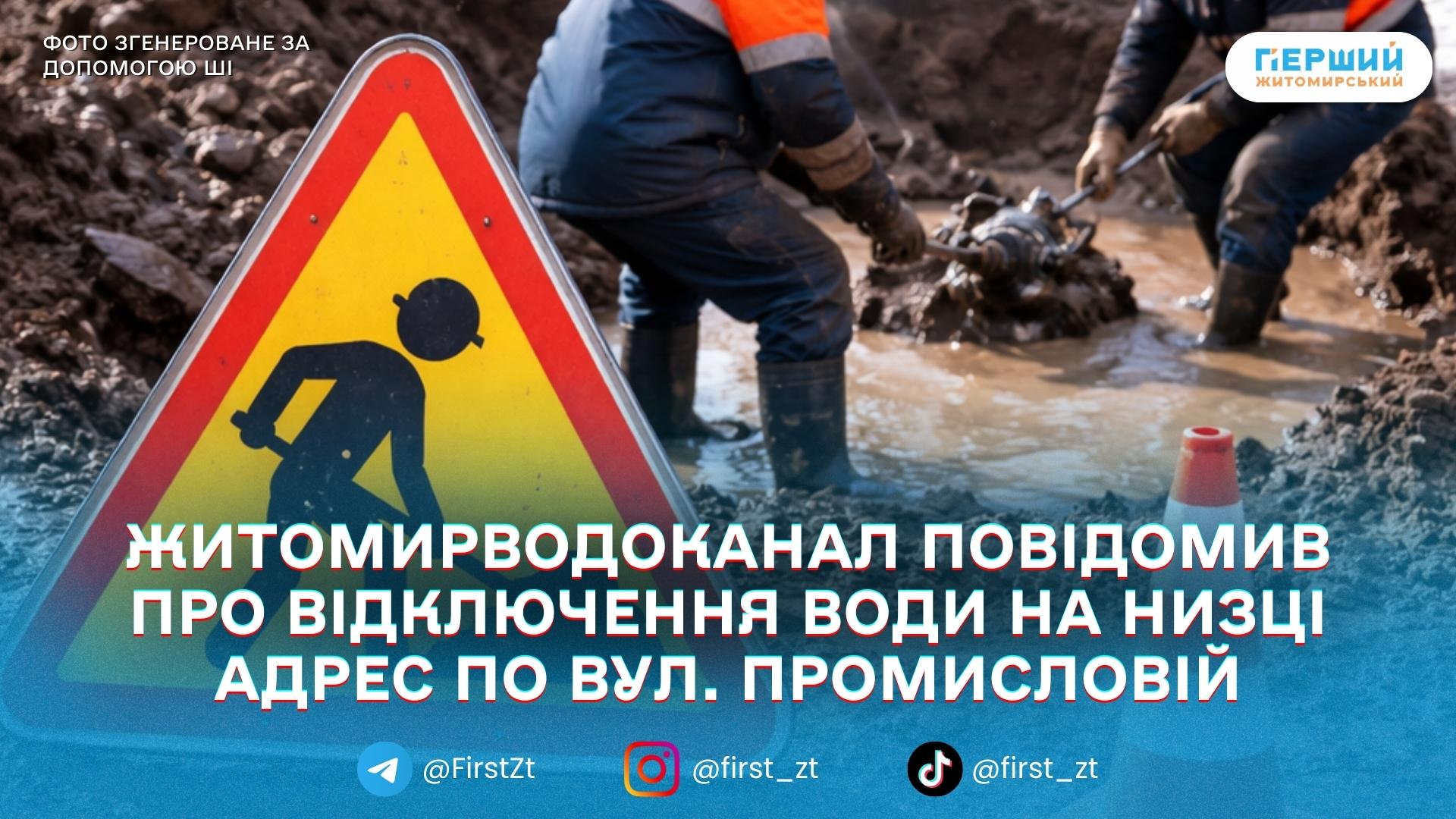 У Житомирі через аварію на водогоні тимчасово призупинили водопостачання за низкою адрес на вулиці Промисловій. Про це повідомили в КП “Житомирводоканал”.