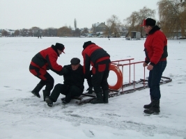 Але категорично забороняється робити це ударами ніг! Місця, де лід слабий, видно здалеку: ці ділянки темніші. Зазвичай тонким лід буває поблизу берегів, кущів, у гирлах стічних вод і місць, де б’ють джерела. Під час руху по замерзлій водоймі варто обходити небезпечні місця та ділянки, вкриті товстим шаром снігу.