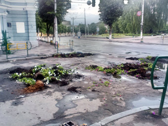 Три великих квітника були повністю розбиті, кажуть у міській раді. Зараз на комунальному підприємстві «Зеленбуд» спеціалісти ремонтують квітники та висадять у них нові квіти.