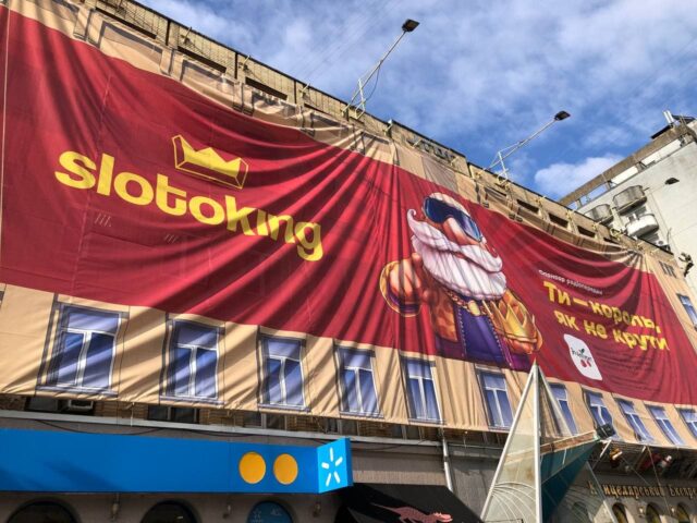 На будівлі УТОГ в Житомирі замість величезного прапора України, який у 2017 році внесли до національної Книги рекордів, тепер вісить реклама казино.