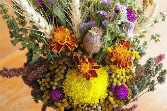 Серед квітів у букеті обов’язково присутні великі достиглі голівки маку. Такий букет називається «маковійчик», або «маковейка». До нього кладуть і чорнобривці, і жоржини, і айстри, і гвоздики, і барвінок, а також різні трави (які в народі називають зіллям, зіллячком): васильки, м’яту, чебрець, любисток, петрові батоги, полин, деревій, будяк-пристрітник.