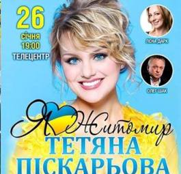 26 січня (вівторок), о 19:00, у концертному залі телецентру (вул. Театральна, 7) в рамках всеукраїнського туру «Я – Україна» співачки Тетяни Піскарьової відбудеться концерт «Я люблю Житомир».