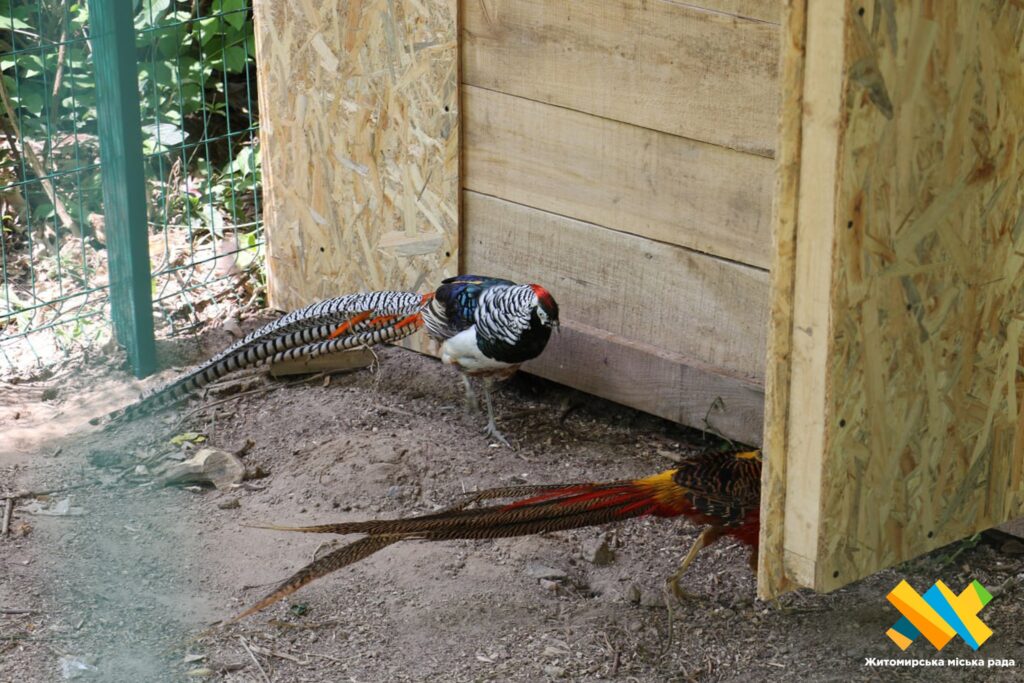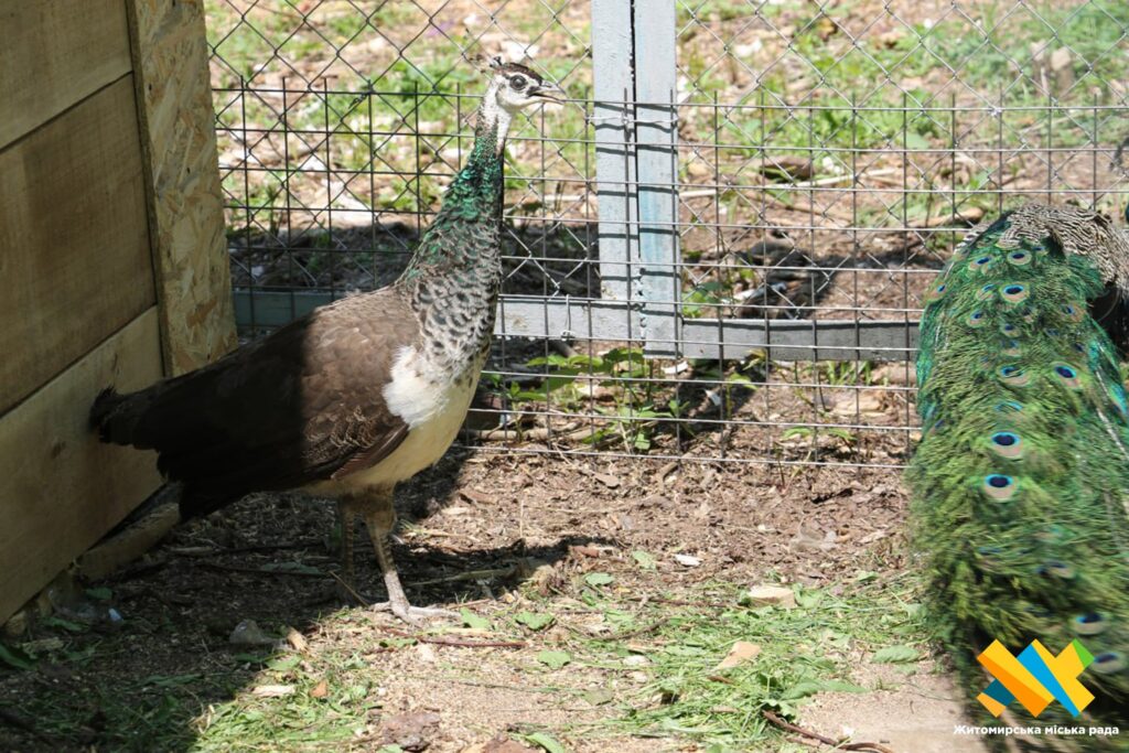 Два фазани і три павичі тепер живуть у житомирському Гідропарку. Їх привезли волонтери-захисники із Любарщини, а також із територій, де зараз ведуться активні бойові дії.