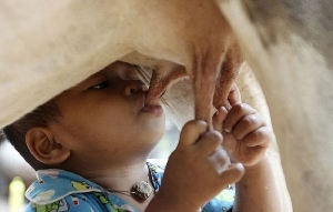 Проте смоктання молока корови таким чином все ж таки обмежили до одного разу на день.
