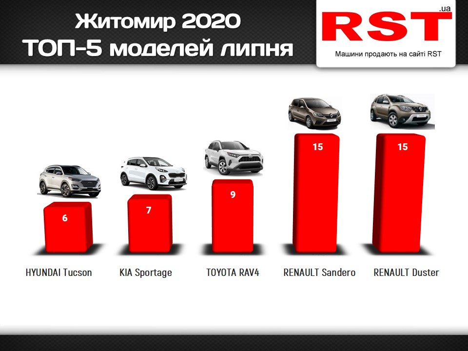 4 млн дол – сукупна вартість 170 автомобілів, які купили у липні жителі Житомирщини. Найпопулярніші – французькі кросовер Renault Duster і хетчбек Renault Sander.