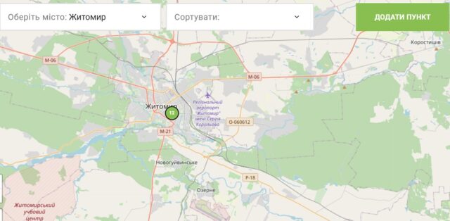 У Житомирі діє онлайн-карта із пунктами сортування відходів.
