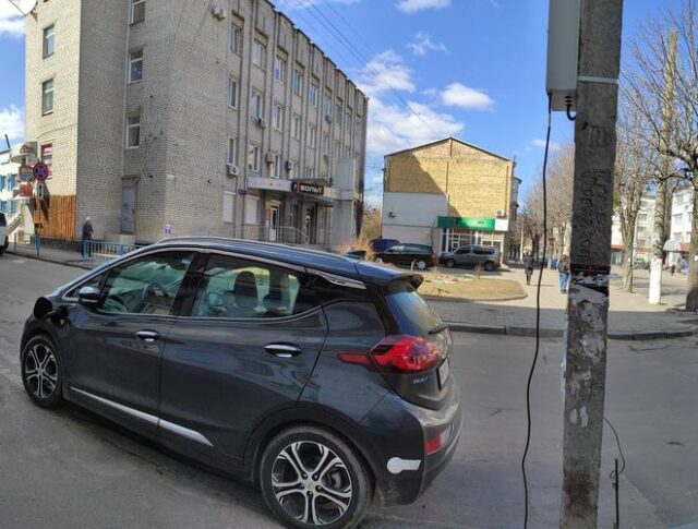 У Житомирі власник електрокару приєднався до міської електромережі на стовпі та заряджав своє авто.