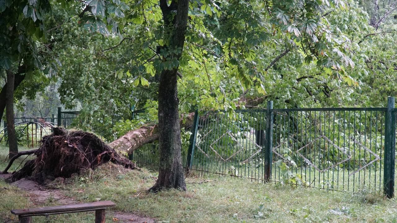 Пориви вітру були настільки сильними, що повиривали з корінням та поламали дерева. Дерева валилися на проїжджу частину, тротуари, огорожі, лінії електропередач, у двори та автівки.