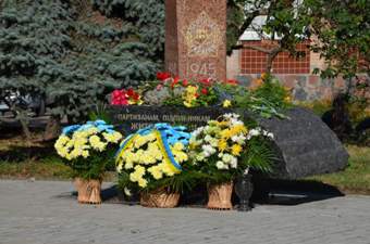 Урочиста церемонія покладання вінків та квітів до пам’ятника «Партизанам, підпільникам Житомирщини» біля загальноосвітньої школи №17 пройшла за участі керівництва міста та громадськості.