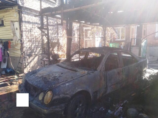 По прибуттю вогнеборців до місця виклику полум’ям було охоплено легковий автомобіль Mercedes-Benz, вогонь з якого перекинувся на піднавіс загальною площею 15 кв. м. Транспортний засіб знаходився на території приватного домоволодіння".