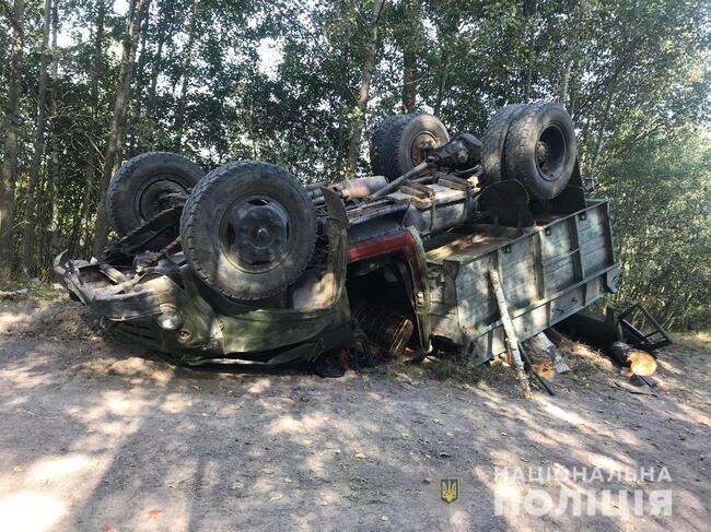 Водій вантажного автомобіля «ЗІЛ», 23-річний житель району, не впорався з керуванням та допустив перевертання транспортного засобу.