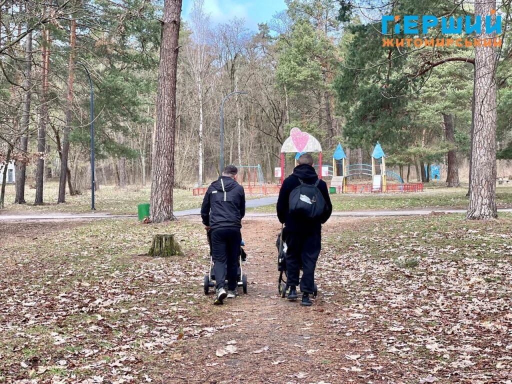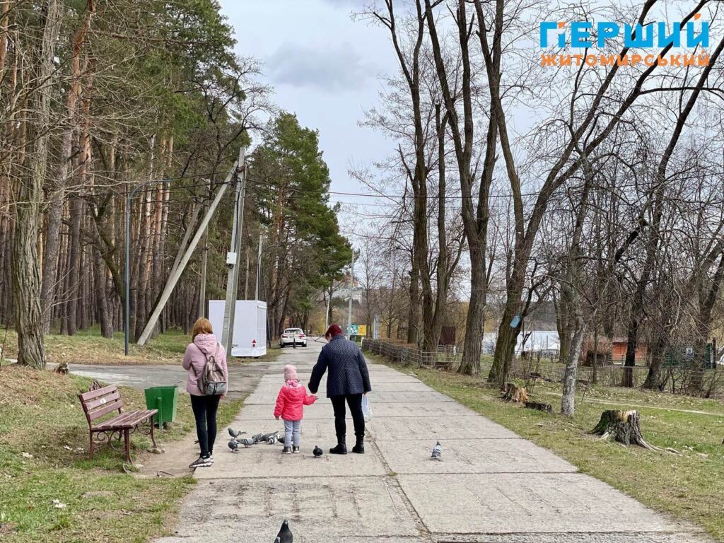 Навіть не зважаючи на ранню пору 25 березня на території парку досить людно – перехожі, спортсмени, дідусі та бабусі з онуками, батьки, що прогулюються з візочками, малеча, яка годує голубів, білочок, пригощає тварин і птахів у вольєрі. Крім цього, на Тетереві тренуються веслувальники.