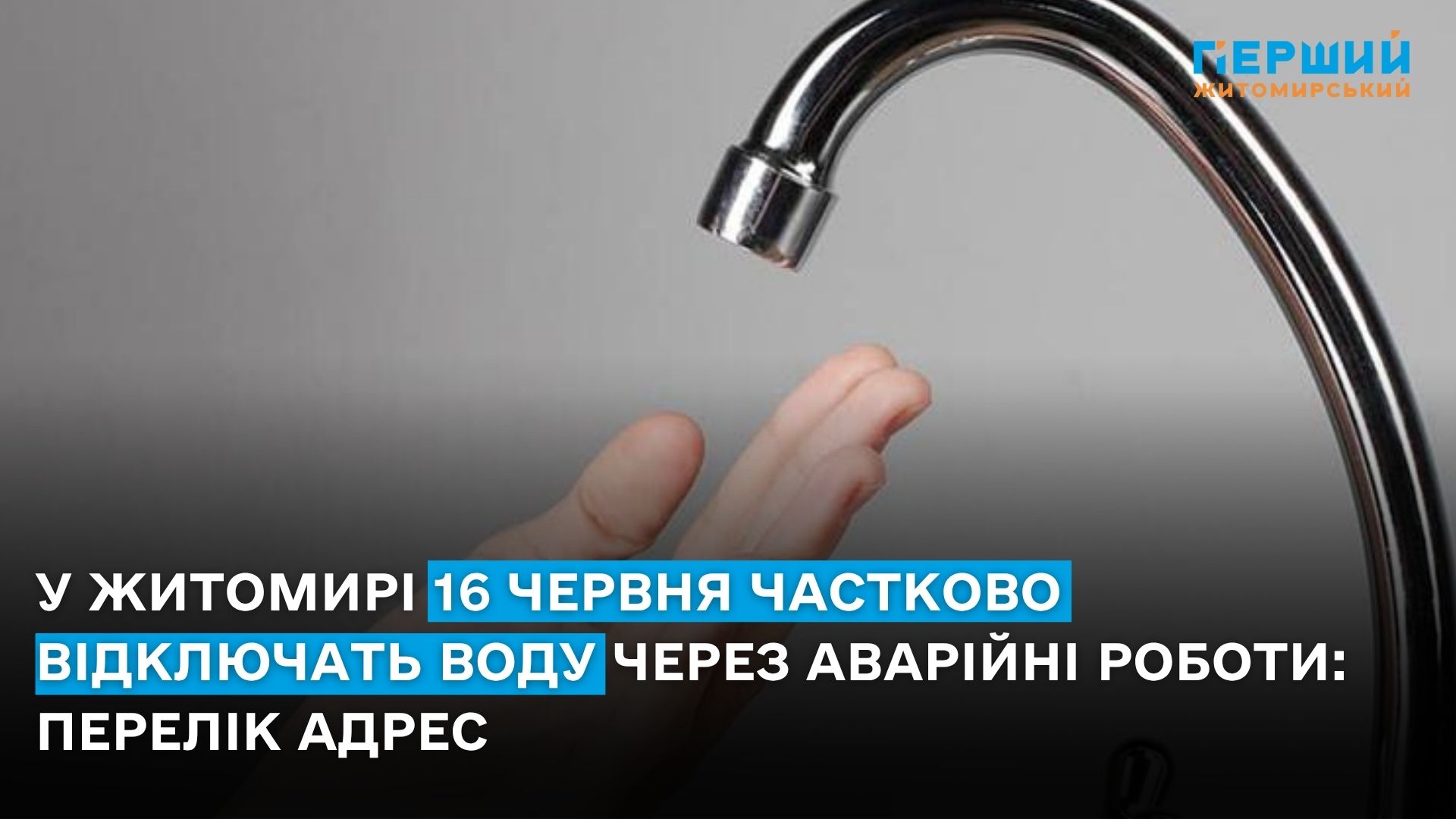 16 червня у Житомирі тимчасово призупинять водопостачання на кількох вулицях у зв’язку з аварійно-відновлювальними роботами на водопровідній мережі. Про це повідомляє комунальне підприємство.