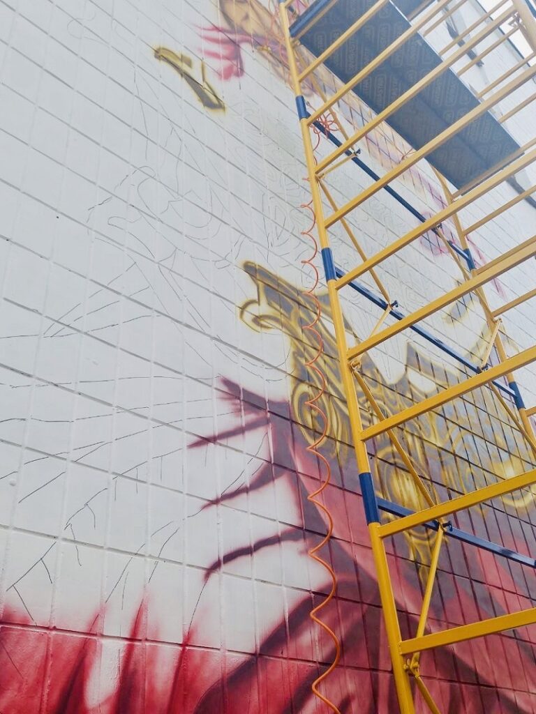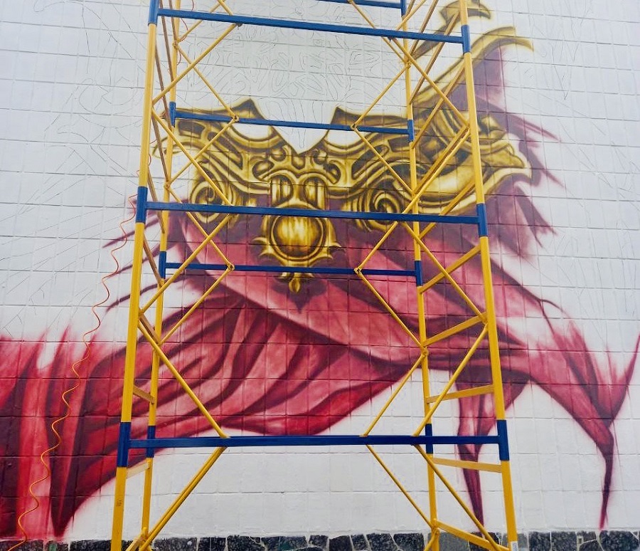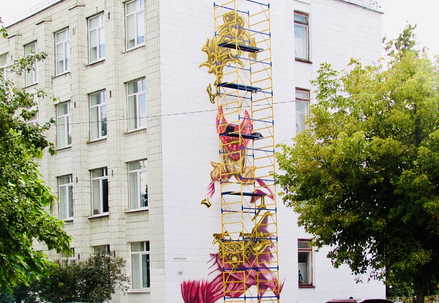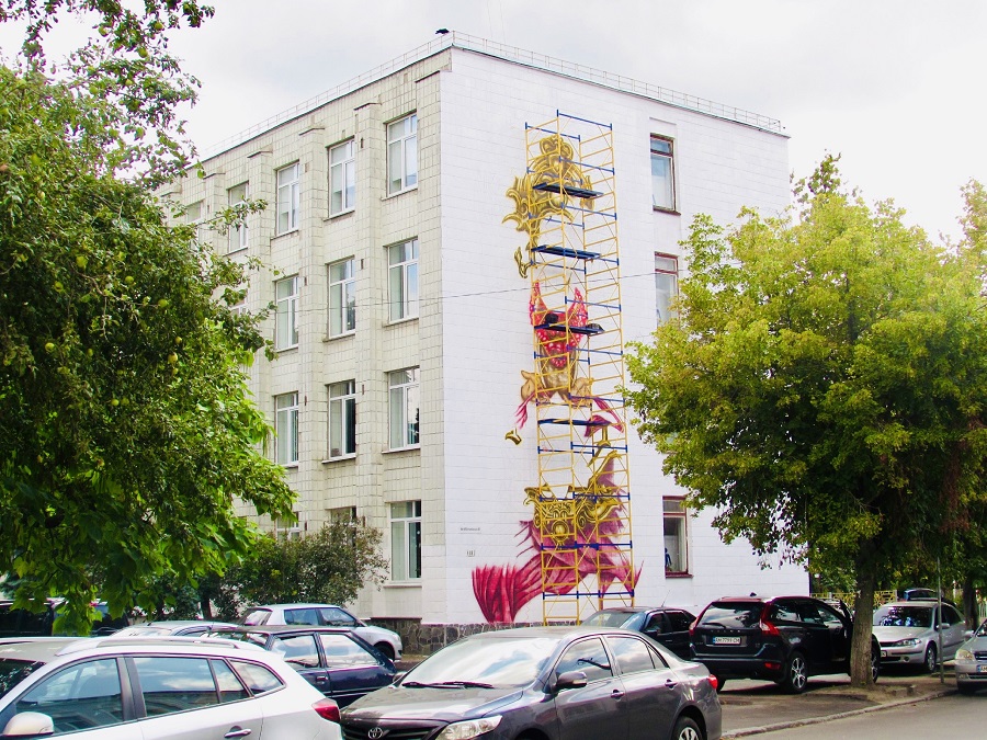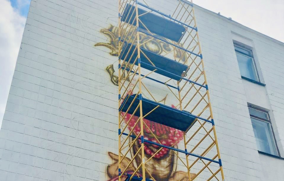 До 24 серпня він планує завершити мурал.