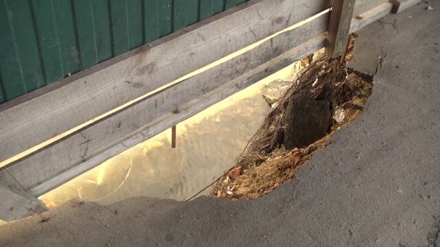 “Під час зливи воно наповнилося водою, і зараз частина нашого тротуару провалилась. В будь-якому випадку його треба підсипати та відновлювати. І найближчим часом всі служби мають визначитися, щоб уникнути подальшого провалля. Ще ми поки не знаємо власника – забудовника і підрядника, найближчим часом визначимо, приймемо міри і вас сповістимо“, – розповів Шевчук.