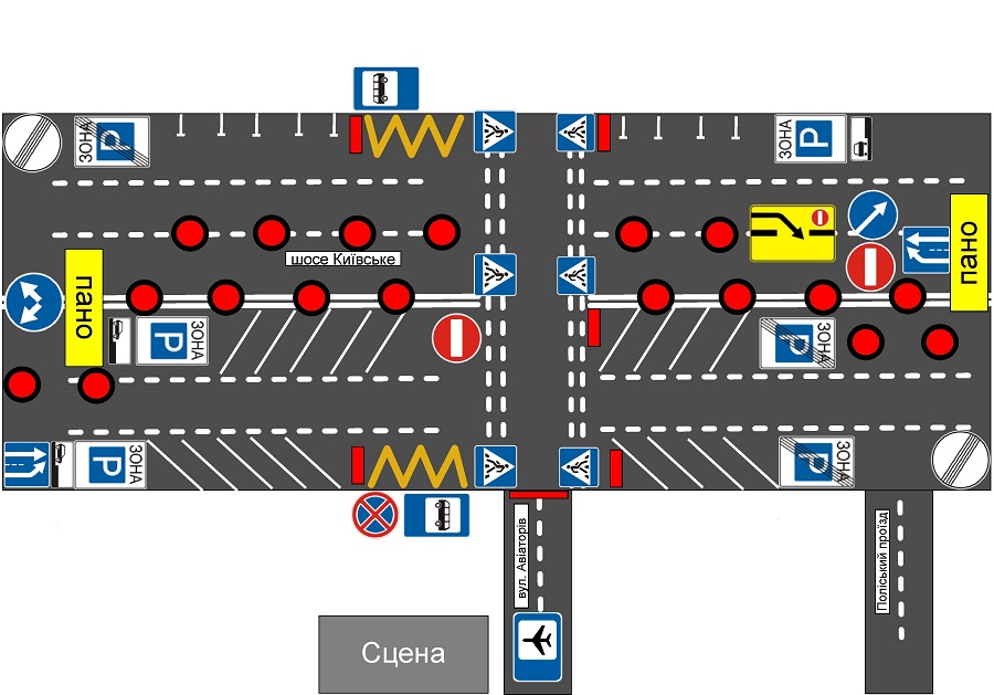 Лише дві смуги (з шести) Київського шосе в районі аеропорту Житомира працюватимуть на в’їзд та виїзд у вихідні 14-15 серпня. На інших чотирьох смугах організують паркувальну зону для гостей Korolov Avia Fest.