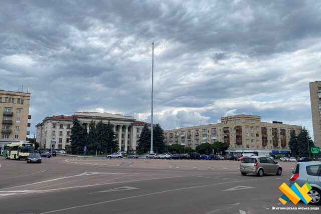 У Житомирі внаслідок негоди поривами вітру пошкоджено трос на головному флагштоці із найбільшим прапором. Під час обслуговування флагштока підрядною організацією, яка і є його виробником, трос обірвався.