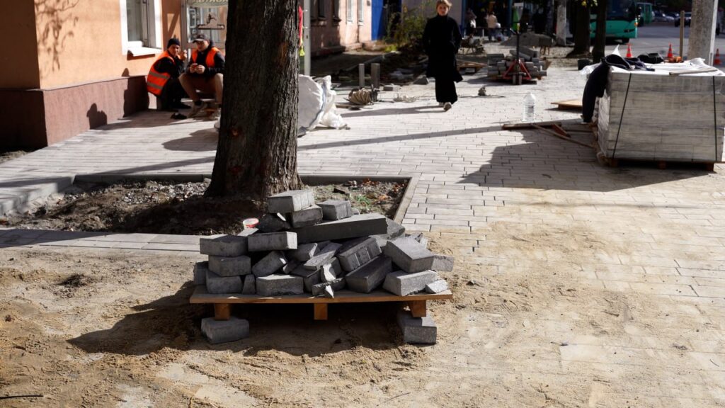 Проте містяни скаржаться, що 17 жовтня роботи з укладання плитки по вулицях міста тривають. У мерії пояснили, що підрядники завершують розпочаті раніше проекти.