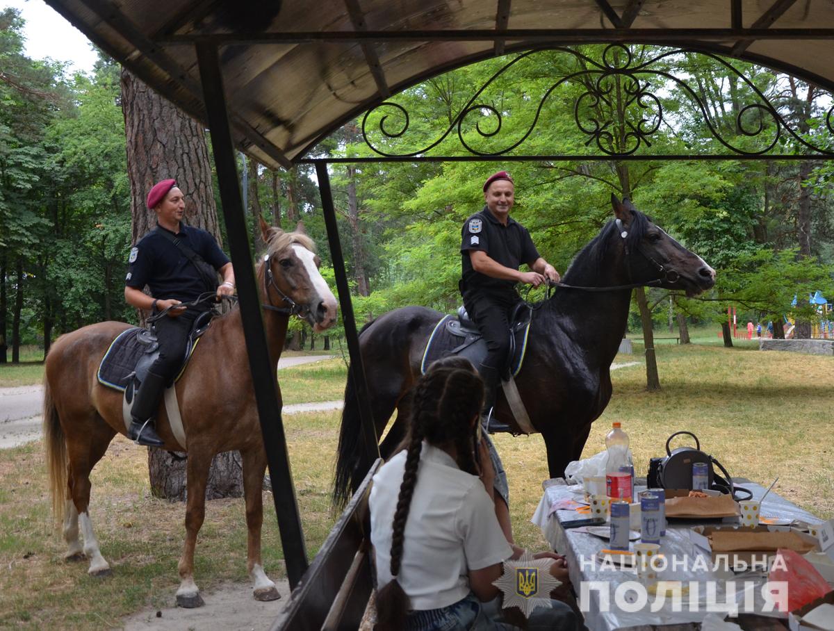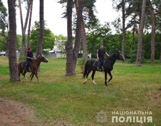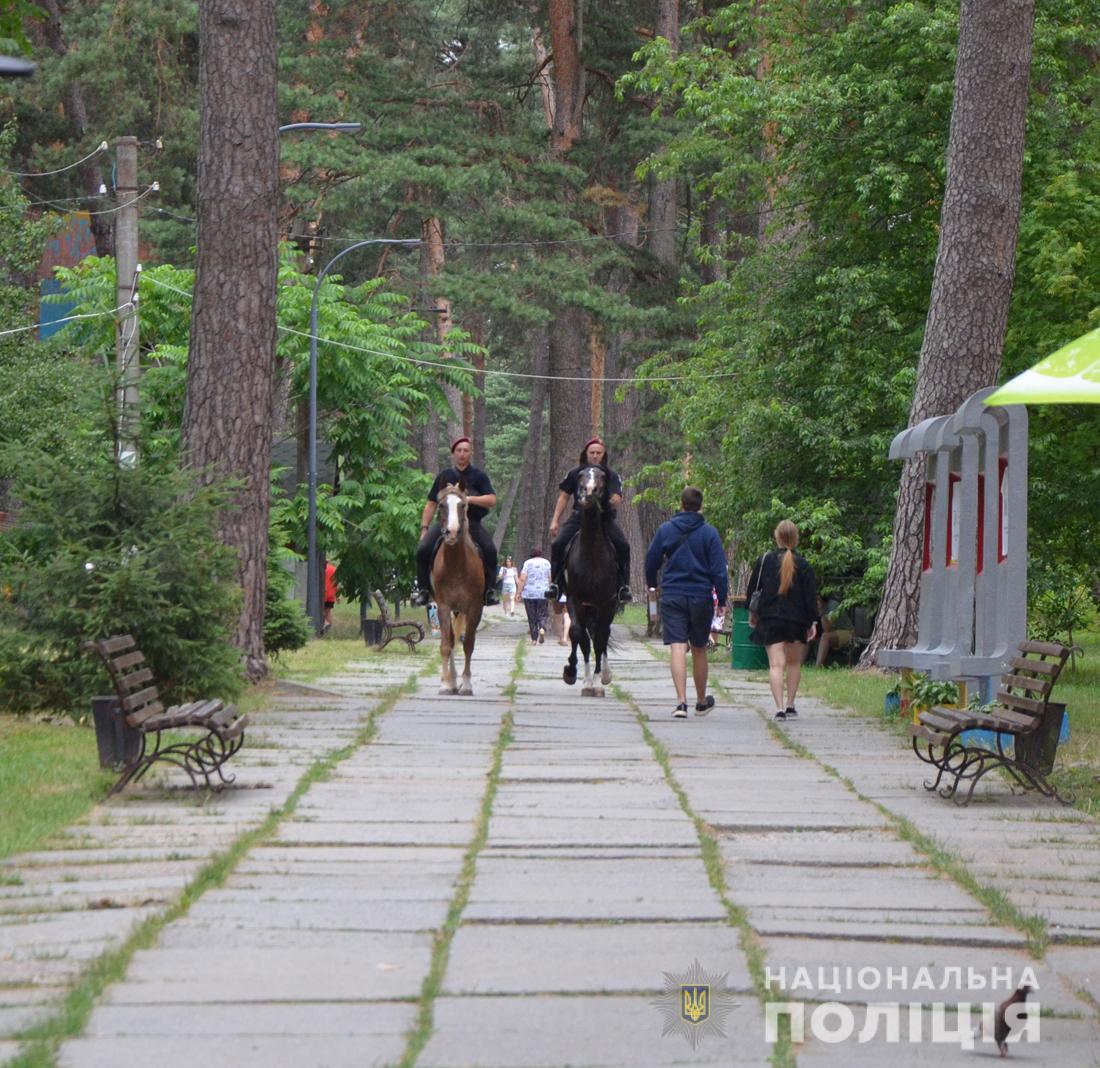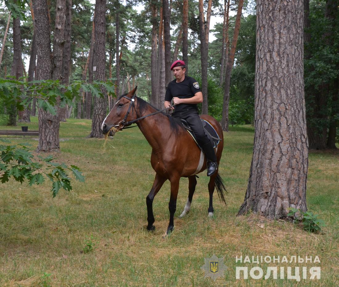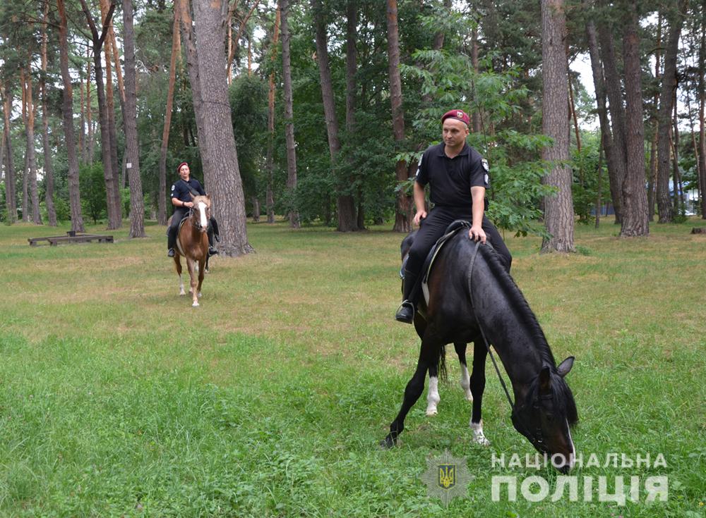 У лісопаркових та паркових зонах Житомира переважно у вихідні та святкові дні працюють кінні патрулі. Поліцейські переважно чергують у гідропарку та патрулюють порядок під час відпочинку житомирян.