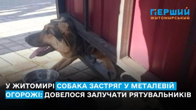 Увечері 13 квітня на приватному подвір’ї у Житомирі собака потрапив у пастку — тварина застрягла між прутами металевої огорожі і не могла самостійно вибратись. На допомогу прийшли рятувальники, які за кілька хвилин звільнили переляканого улюбленця.