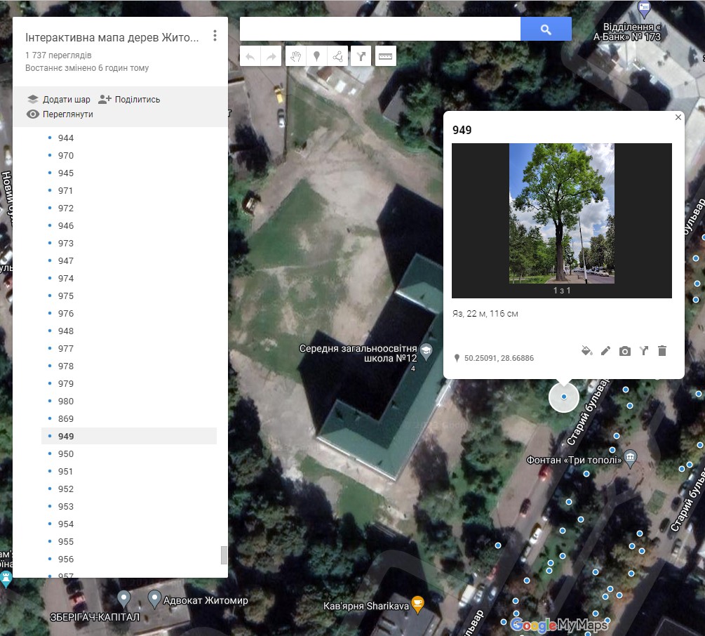 «Оцифрували першу тисячу дерев у Житомирі», – такими результатами проєкту, який стартував у лютому цього року, поділився завідувач кафедри лісівництва, лісових культур та таксації лісу Поліського національного університету, керівник науково-практичного гуртка «ForestTrue» Юрій Сірук.
