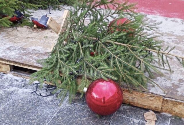 У Житомирі в ніч на 25 грудня невідомі знову розтрощили новорічну фотозону на вул. Михайлівській.