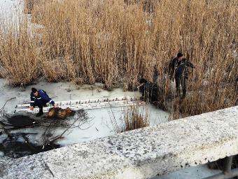 По прибуттю на місце події бійці ДСНС з’ясували, що тварина знаходиться на відстані 10 м. від берега. Рятувальники поклали на кригу драбину, по якій один із них повзком дістався ополонки. Ще двоє колег підстраховували його з берега. Він вихопив перелякану собаку з крижаної води та таким же чином повернувся з нею на берег. З’ясувалося, що порятована змерзла так, що не може навіть поворухнути кінцівками.