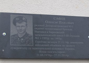 Через три місяці після трагічної загибелі рядового Олексія Сафіна жителі Баранівського району назавжди вшанували пам’ять свого земляка, встановивши іменну пам’ятну дошку.