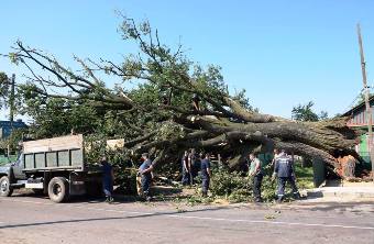 Дуб зруйнував дах і обірвав лінії електропередач, ніхто з людей не постраждав. Тепер дерево розпилюють та вивозять коммунальники, а чиновники проводять нараду, аби вирішити, як допомогти постраждалим родинам.