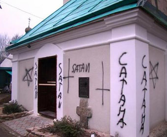 Сатанинська символіка у вигляді перевернутих хрестів, пентаграм та різноманітних написів вказувала на те, що хтось бажав підірвати довіру до православної церкви.