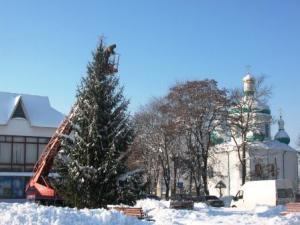 Середнього розміру дерево, яке вже близько двох тижнів без прикрас простоювало на майдані Соборному, поступово перетворювалося в охайну новорічну ялинку.
