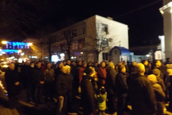 На імпровізованій сцені традиційно по кілька хвилин виступали усі бажаючі, а близько 19.00 людям запропонували колоною пройтися центром міста та закликати інших мешканців приєднуватися до акцій або їхати прямо зараз у Київ.