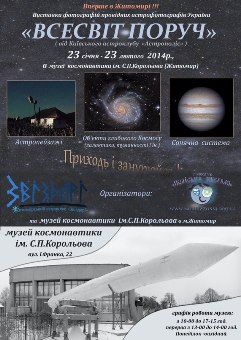 В музеї космонавтики ім. С.П. Корольова м. Житомира 23 січня 2014 року відкривається виставка любителів астрономії «Всесвіт – поруч».