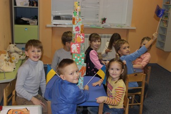 Пані Наталя провела майстер-клас по дактилю та мови жестів нечуючих. Діти навчились показути своє ім’я та фрази « Я люблю свою родину» та «Моя батьківщина – це Україна».