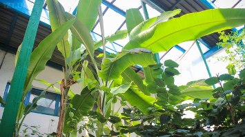 "З бананом трохи складніше, бо треба дуже слідкувати за температурою. Дорослі стебла викидають квітку, з якої й розвиваються плоди. Нам не вдалося дочекатися стиглого урожаю, тому просто засушила гілку, аби показувати школярам, які приходять на екскурсію. Стовбури бананів оглядаю, щоб не завелися шкідники та гниль, обрізаючи ножем. Навесні із землі прорізалося кілька нових пагонів і за три місяці виросли під три метри – з них в наступному році й чекати урожай.