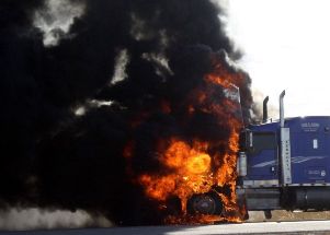 Неподалік Коростишева поблизу села Козак загорілась вантажівка Volvo, яка перевозила водонагрівачі.
