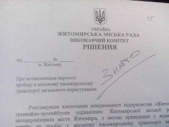 "Зняли з розгляду питання про підвищення вартості тарифів на проїзд в місті Житомирі. Виявили ряд фактів не відповідності інформації в розрахунку тарифів реальній ситуації. Для прикладу в окремих розрахунках закладено зарплату водіїв в розмірі 35 грн/год. По факту водії оформлені на мінімалку.