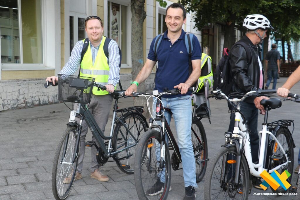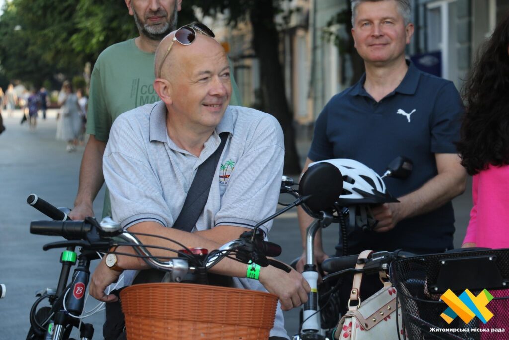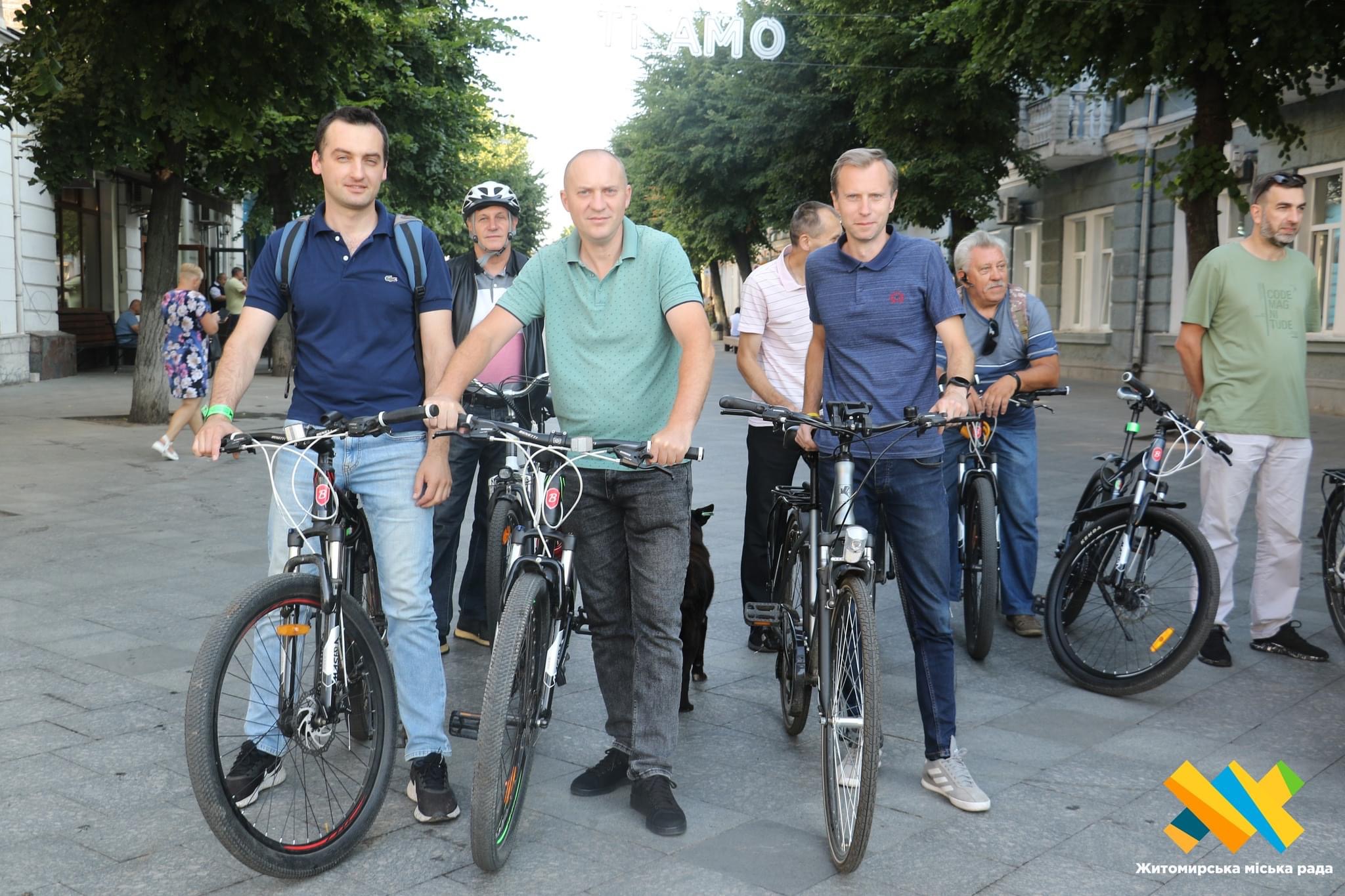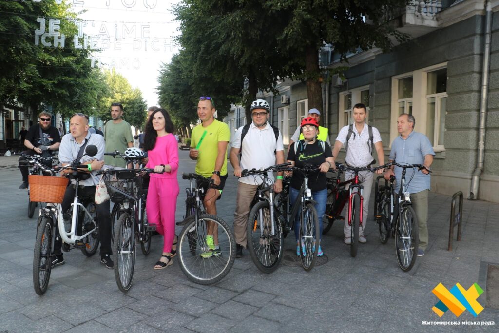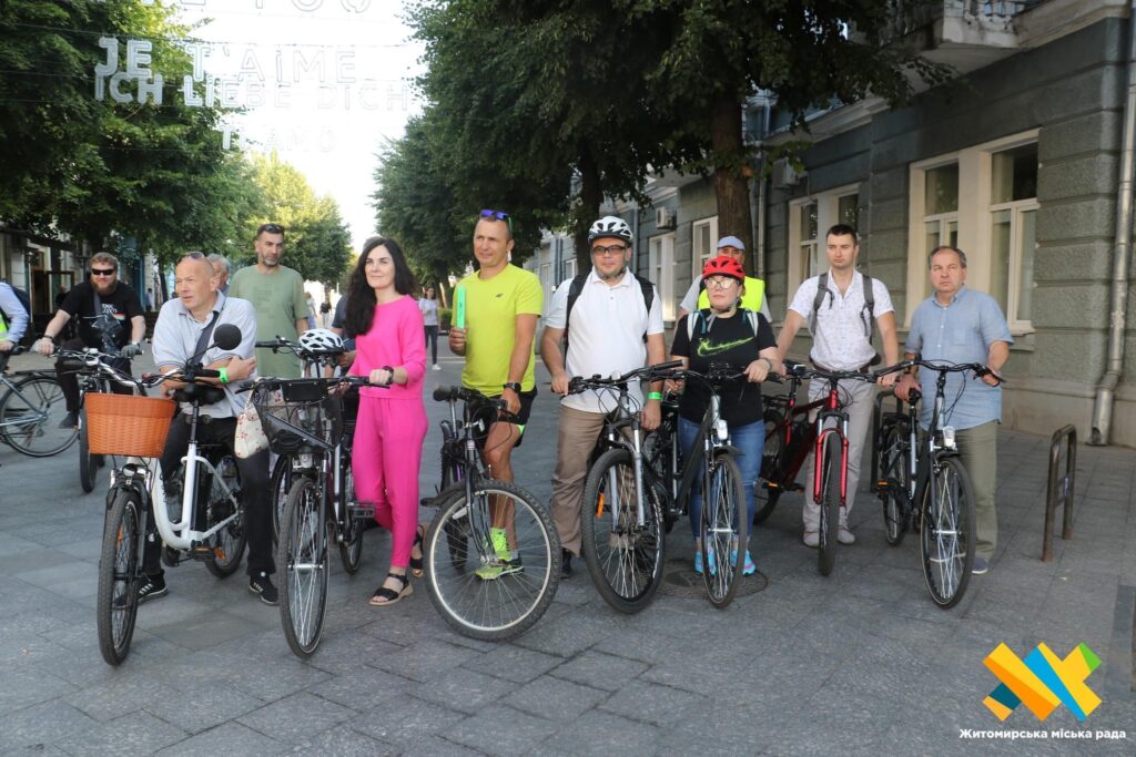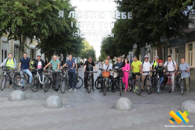 Близько 50 житомирян приїхали на велосипедах на Михайлівську 20 липня у рамках флешмобу «Велосипедом на роботу».