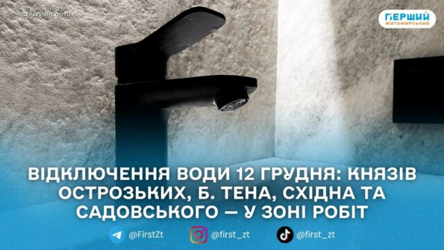 12 грудня в Житомирі тимчасово призупинять водопостачання на кількох вулицях у зв’язку з аварійно-відновлювальними роботами. Про це повідомили в КП «Житомирводоканал».