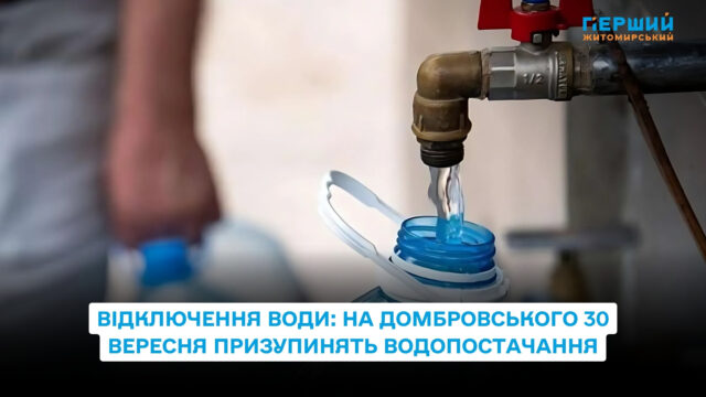 30 вересня у Житомирі на вулиці Домбровського, 59 та 59б буде відсутнє водопостачання. Про це повідомили у комунальному підприємстві «Житомирводоканал».