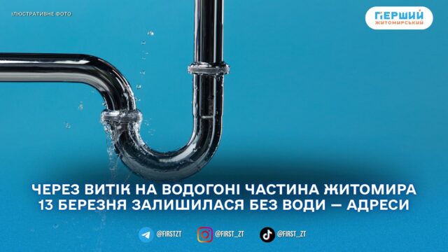У Житомирі 13 березня через аварійно-відновлювальні роботи тимчасово призупинили водопостачання за низкою адрес. Про це повідомило КП «Житомирводоканал».