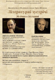 В приміщенні актової зали Житомирської обласної наукової універсальної бібліотеки ім. Олега Ольжича 30 січня 2014 року о 16.00 відбудеться зустріч з відомими українськими сучасними письменниками: номінантом на Національну премію ім. Т.Г. Шевченка в 2014 році Мирославом Дочинцем та засновником Львівського видавництва «Апріорі» Юрієм Ніколишиним.