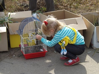 Відвідувачі осіннього ярмарку здебільшого збираються біля кліток із голубами та кролями, розглядають їх, спілкуються із господарями, діляться порадами й досвідом. Батьки із дітьми на виставку прийшли прогулятися. Малеча гладить тварин і птахів, фотографується з ними.