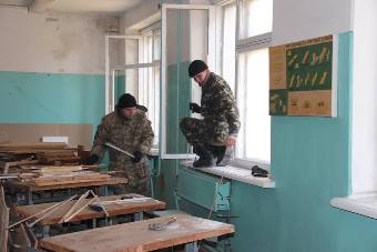Бійці 30 бригади в зоні АТО відновлюють школу у м.Світлодарськ Донецької області.