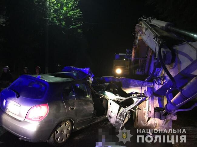 У результаті зіткнення авто з екскаватором один чоловік загинув, інший – потрапив до лікарні. Розпочато досудове розслідування.